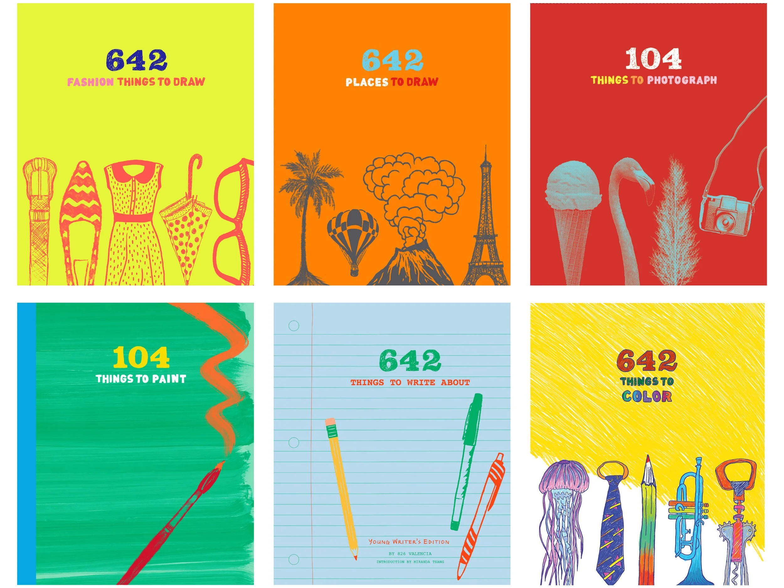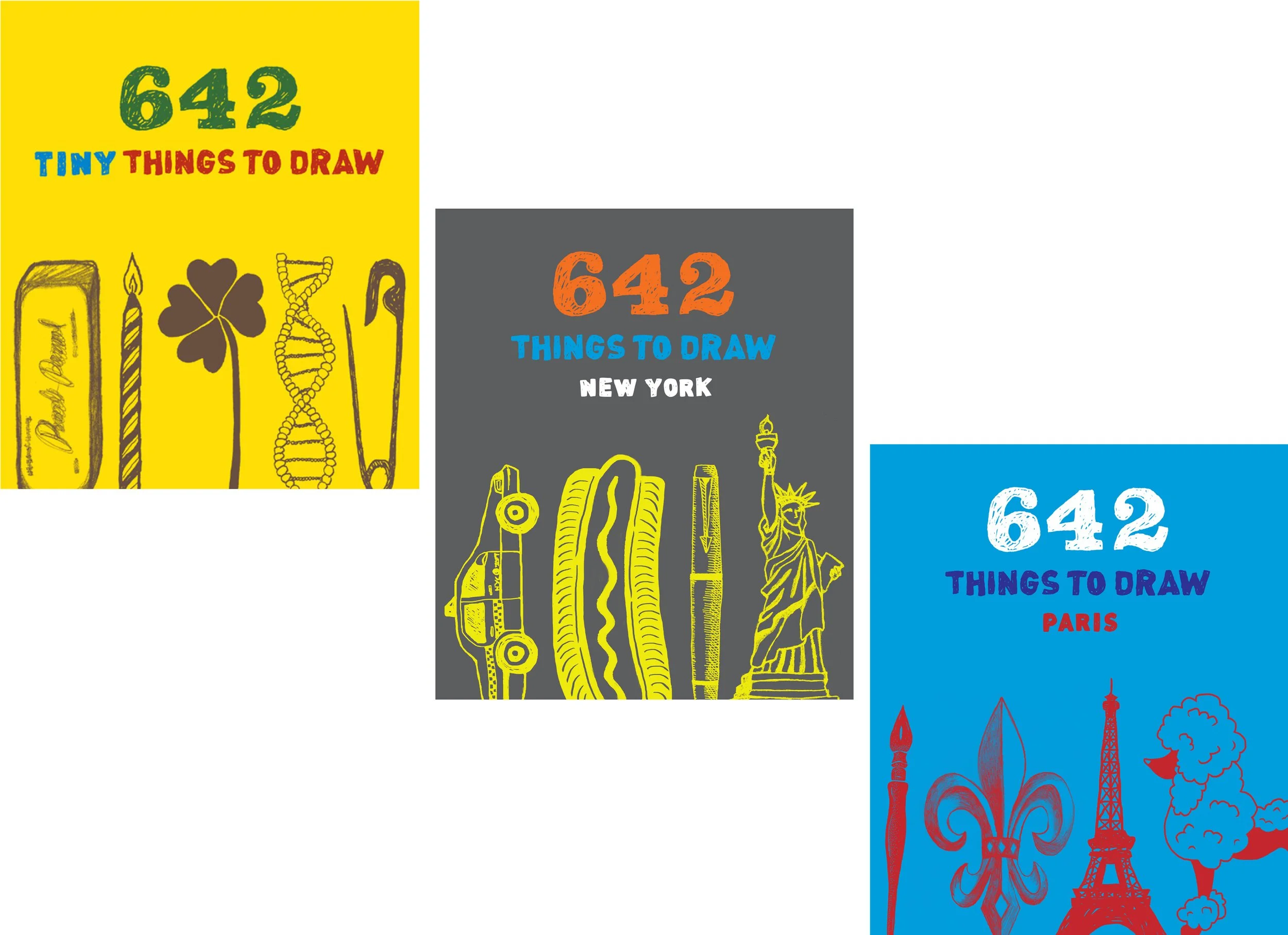 This is a series of inspirational sketchbooks/journals with random drawing or writing prompts in varied page layouts to encourage spontaneity when using them, published by Chronicle Books. I designed and illustrated a fun and approachable “642” branded look with all ages and levels of creativity in mind. 642 Things to Draw kicked off the series, with the design inspired by the classic yellow pencil. The series grew into several other books and formats with different themes that I continued to develop and illustrate. The 642 series became a bestseller with over a million copies sold.